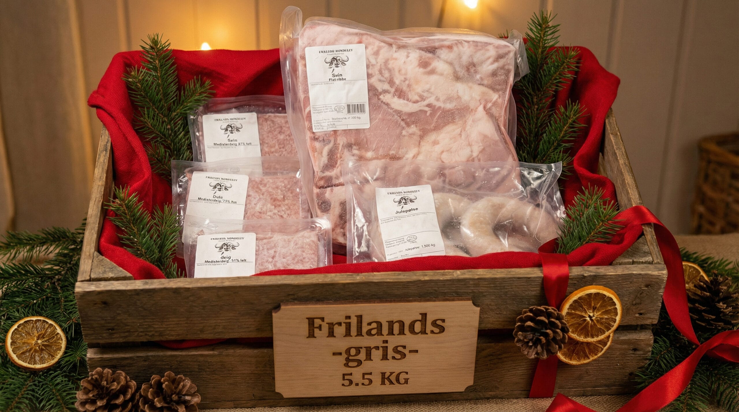 Julekasse liten passer for deg som vil ha den viktigste julematen fra frilandsgris, uten å fylle hele fryseren. Du får alt du trenger til en skikkelig julemiddag og noen ekstra måltider.